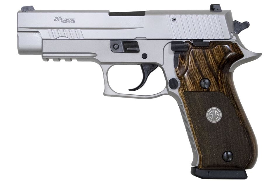 The Sig Sauer P220 Alloy Stainless Elite is brought to you exclusively from TALO. Special features include a stainless steel slide with front cocking serrations, a Stainless Steel Aluminum Alloy Beavertail Frame, custom Sig Medallion Walnut Grips, a Sig SRT trigger, and SIGLITE Night Sights.