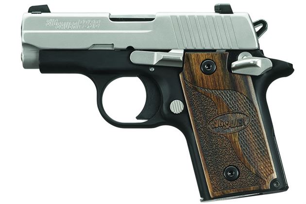 New from SIG SAUER®, the P238 SAS. The pistol has gone through a radical dehorning process resulting in an ultra smooth, snag free profile that’s ideal for concealed carry. It’s just a fraction of the size of our ful-size pistols. A smart looking, small handgun built with the same accuracy and reliability as large frame SIG SAUER pistols. With an overall length of just 5.5 inches a height of 3.96 inches, and weighing just 15.2 ounces, the SIG SAUER P238 is the ultimate firepower in an all metal frame concealed pistol. The P238 SAS is built on an anodized alloy beavertail style frame with custom wood grips for comfort and a secure hold during rapid-fire usage. The stainless steel slide features the popular trademarked SIG SAUER slide serrations, corrosion resistant Nitron finish and SIGLITE® Night Sights.