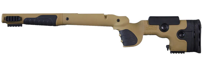 Achieve your highest potential with the rugged GRS Bifrost stock. The Bifrost is made of robust fiberglass reinforced material that can withstand strong shocks and all kinds of weather. Rubberized grip surfaces give a firm grip no matter what the conditions are. The GRS SpeedLock II adjustment system makes it the perfect rifle stock to body fit, withholding the recoil of even the heaviest calibers. The Picatinny Rail mounting system integrates into four different positions on the stock, making it easy to mount light, laser, monopod and other accessories.